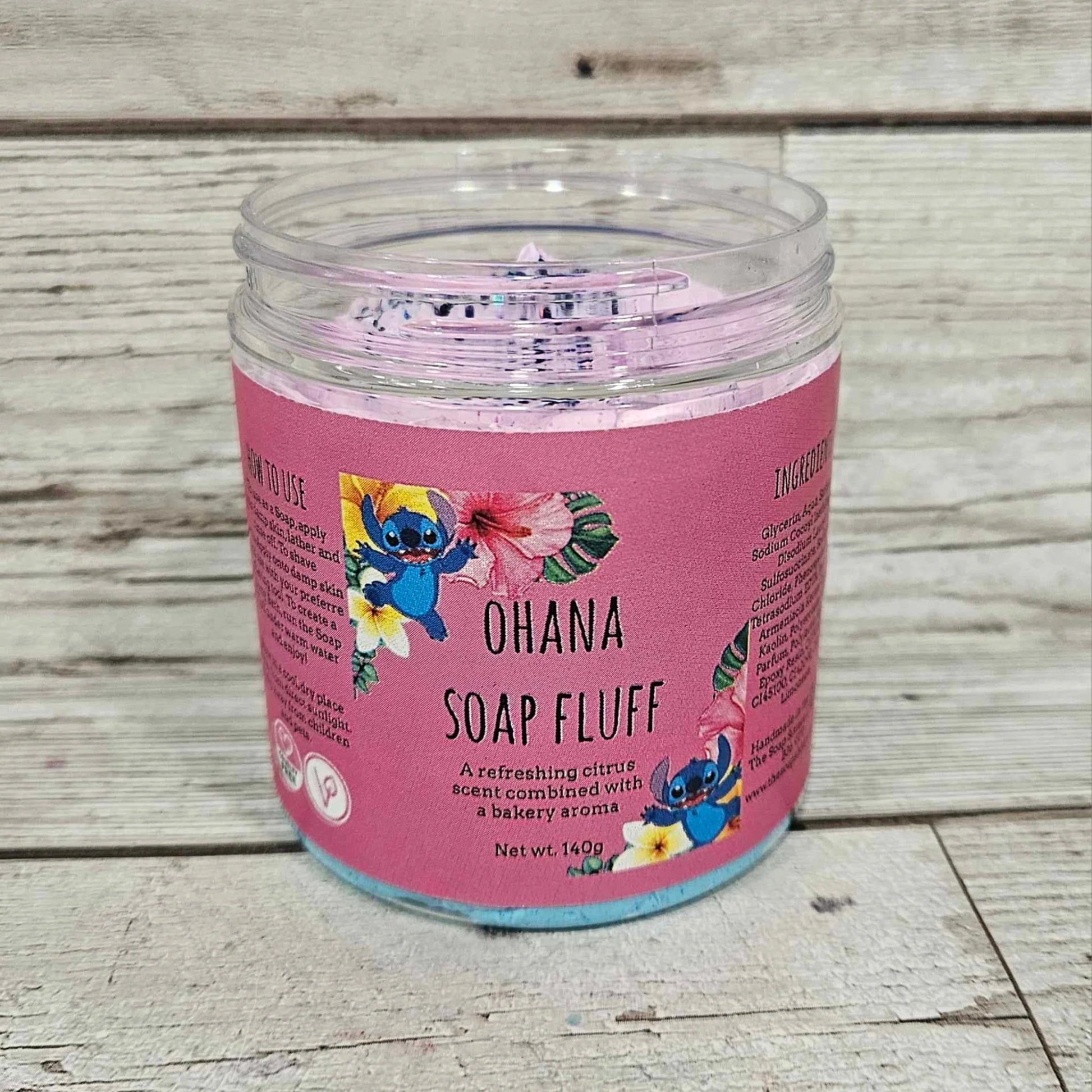 Ohana Soap Fluff is scented in our Lemon Cookie Bar scent which is a combination of refreshing citrus with bakery aroma.