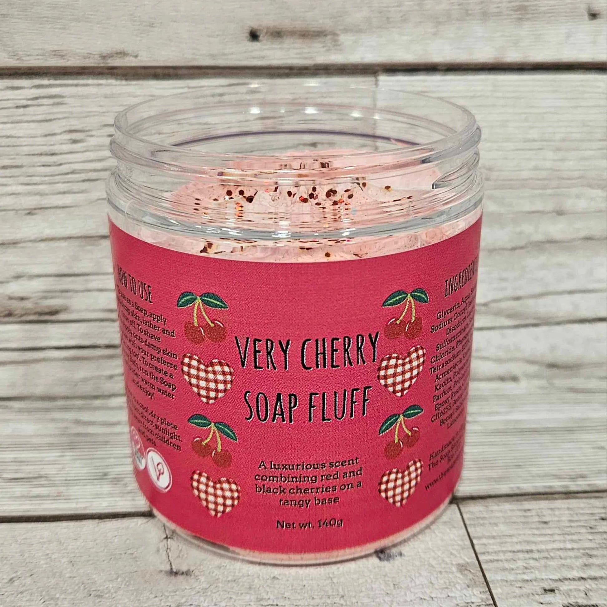 Very Cherry Soap Fluff is scented in a luxurious blend of red and black cherries on a tangy base.