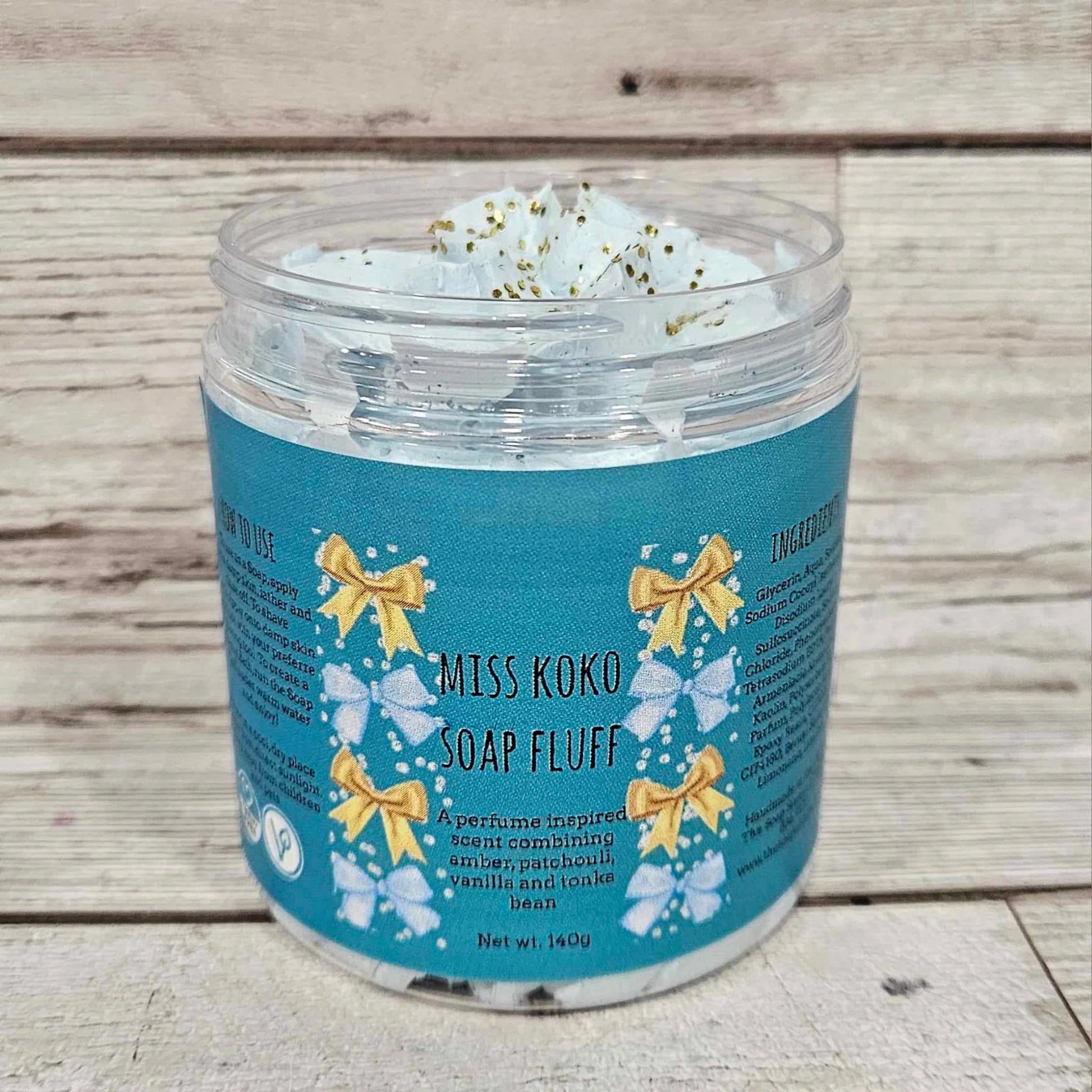 Miss Koko Soap Fluff is a perfume inspired, oriental fragrance combining woody amber, patchouli, vanilla and tonka bean.