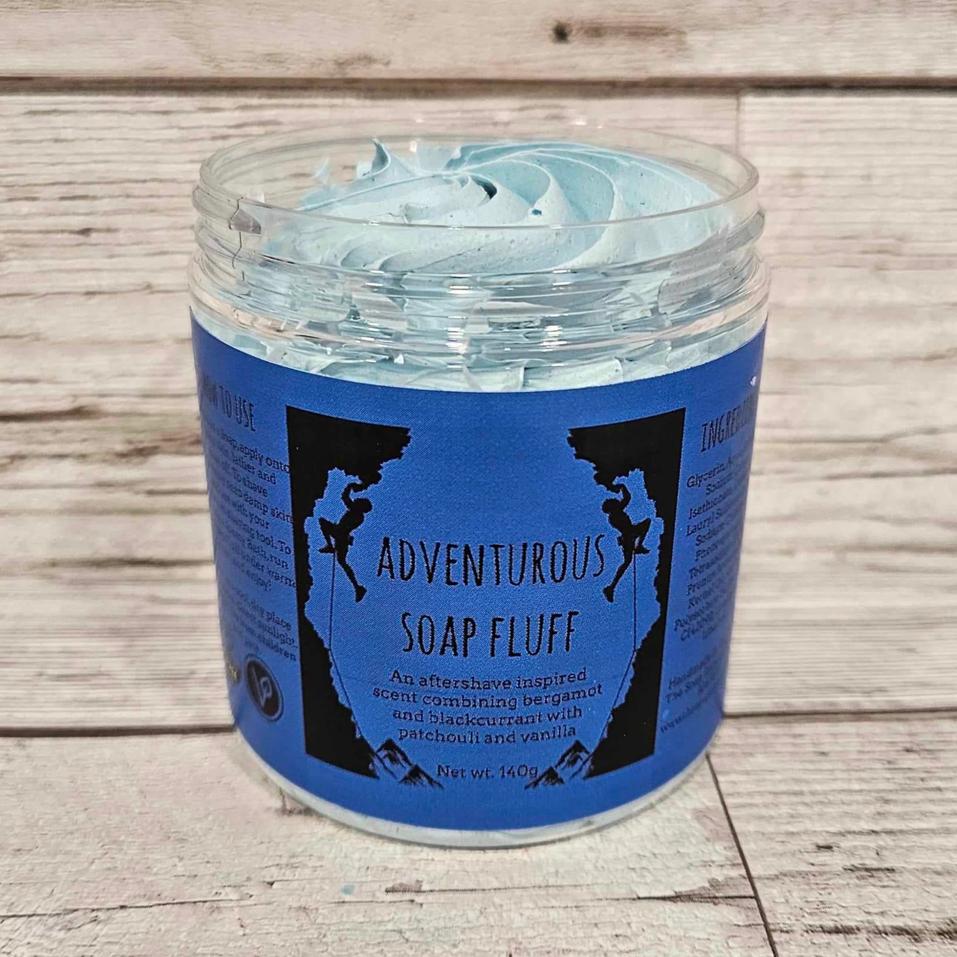 Adventurous Soap Fluff is an aftershave inspired scent featuring top notes of bergamot and blackcurrant resting on a base of musk, patchouli and vanilla.