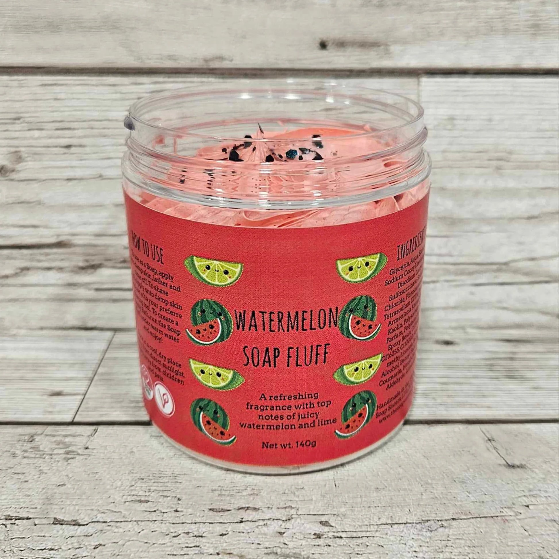 Watermelon Soap Fluff is scented in a refreshing fragrance with top notes of juicy watermelon and lime.