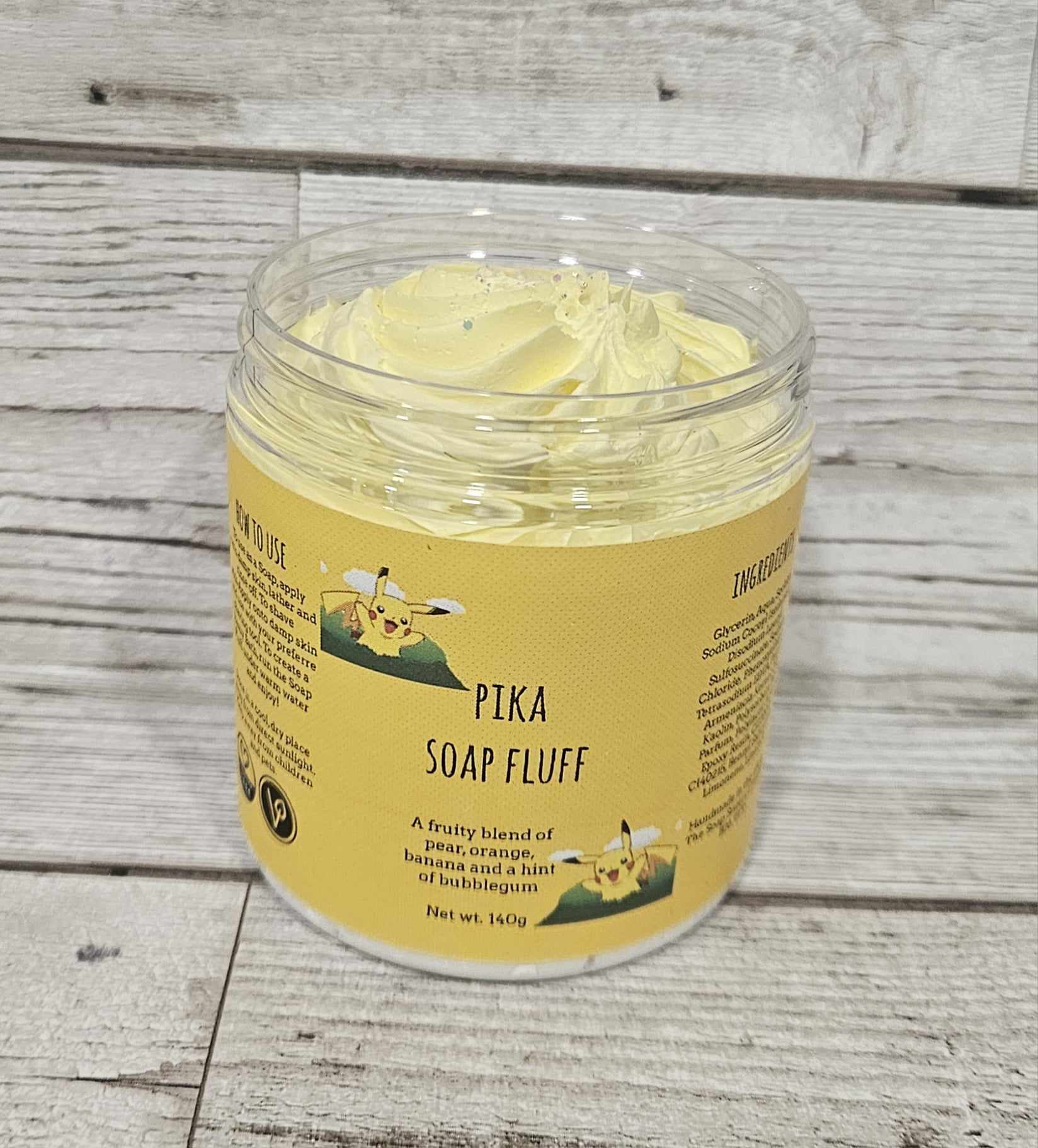 Pika Soap Fluff is scented in Funkey Monkey- A fruity blend of pear, orange, banana and a hint of bubblegum.